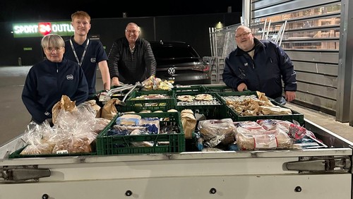 Inden påskens lukkedage samler Føtex-medarbejdere de varer fra, der ikke kan holde sig. Varerne hentes af frivillige fra Menighedsplejen ved Brønderslev kirke, som kører dem til Sognegården, Bredgade 102, 9700 Brønderslev.